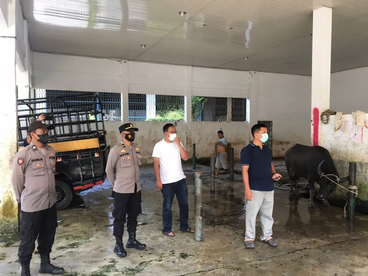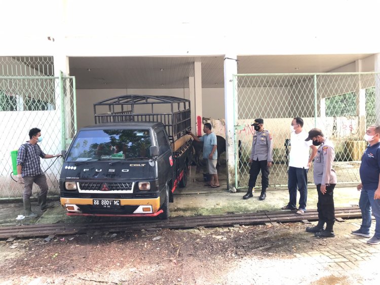 Antisipasi Penyebaran PMK Polres Sibolga Kawal Penyemprotan Disinfectan
