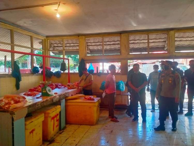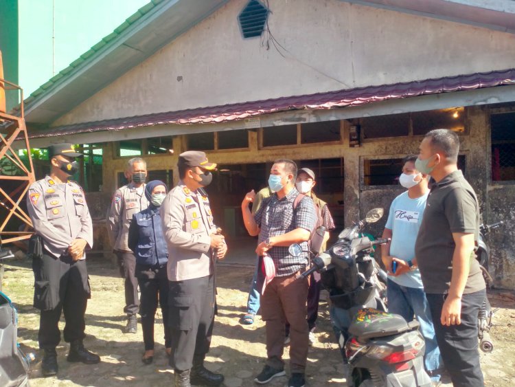 Sibolga, Pijar Tapanuli - Untuk menghindari penyebaran penyakit mulut dan kuku (PMK) Pada hewan di kita sibolga, Kapolres Sibolga AKBP Taryono Raharja,SH,SIK bersama dengan Kadis Kelautan, Perikanan dan Peternakan Sibolga Anwar Sadat,SPi melakukan peninjauan dan pengawasan Rumah Potong Hewan terkait antisipasi masuknya penyebaran Penyakit Mulut dan Kuku (PMK) pada hewan ternak Sabtu (14/5).