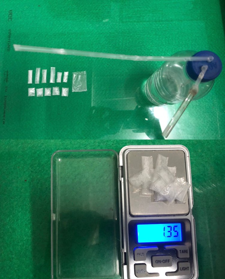 "Barang bukti yang disita, 1 buah plastik es mambo, 1 bh alat hisap/bong dari botol air mineral, 1 bh pipet kaca bekas bakaran sabu, 2 bh pipet plastik, 11 (sebelas) bungkus sabu-sabu terbungkus plastik bening dan setelah ditimbang beratnya 1,34 gram," tegas kasi humas.