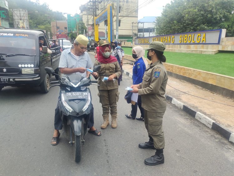 Sibolga, Pijar Tapanuli - Personil Polres Sibolga dan Satpol PP kota Sibolga Laksanakan Operasi Yustisi, sekaligus Kegiatan Rutin yang ditingkatkan (KRYD) menjaring masyarakat untuk bervaksin, jumat (8/4) di persimpangan jalan SM Raja depan terminal Kelurahan Pancuran Gerobak Sibolga.