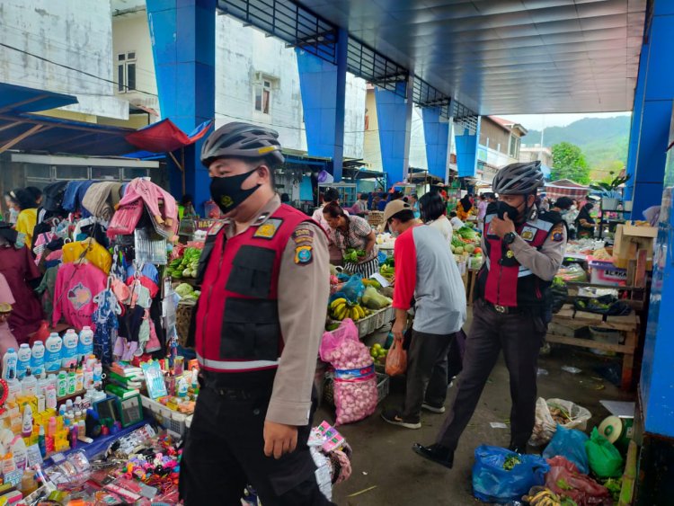 Selain berpatroli, KBO Samapta mengatakan personel juga membagikan masker kepada pedagang dan masyarakat.