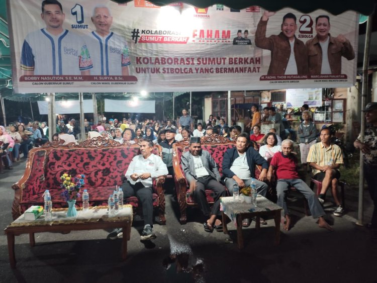 "Kita harus memenangkan no.2 Faham di kota Sibolga, dan memenangkan pasangan no.1 Pilgubsu, Bobby Nasution-Surya untuk Sumatera utara, sehingga keduanya dapat berkolaborasi untuk membangun kota sibolga, terutama dalam mengatasi defisit yang saat ini membebani APBD sibolga. Kalau hanya andalkan APBD, saya rasa, tidak bisa lagi karena beban defisit. Hanya dengan kolaborasi Faham dengan Bobby, Sibolga akan semakin maju, Siap menangkan Faham dan Bobby???*" tegas caong, disambut warga dengan "siap".