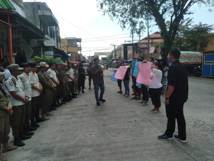 Orator aksi Riski Endàh dalam penyampaian tuntutan aksinya menyampaikan Forum Permuda dan masyarakat peduli kota Sibolga meminta bawaslu kota sibolga dan pemerintah kota sibolga untuk tegas mendeklarasikan tolak money politik di kota sibolga.