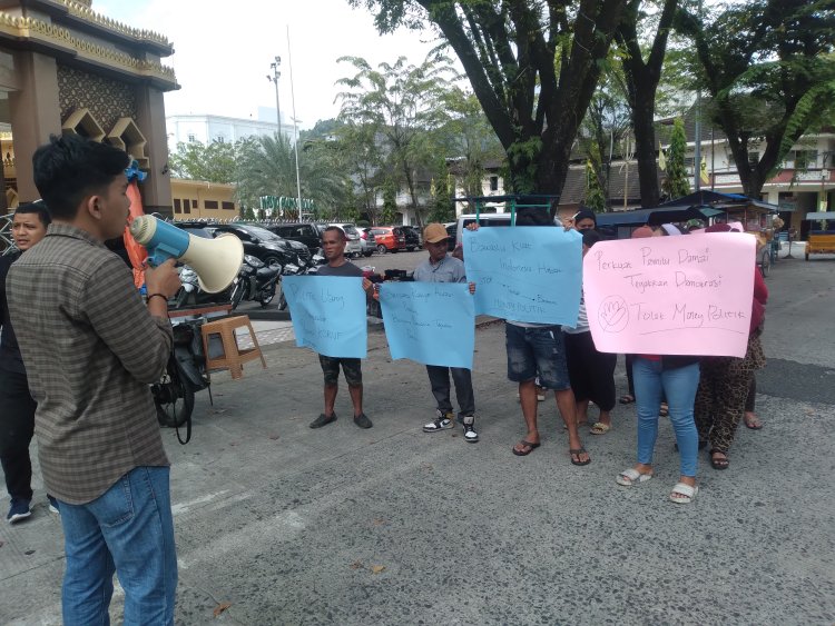 Sibolga, Pijar Tapanuli - Belasan massa yang tergabung dalam Forum Permuda dan masyarakat peduli kota Sibolga (FPMPS), rabu (7/2/2024) di depan kantor Bawaslu Sibolga jl Diponegoro no.39 Pasar Belakang kota Sibolga melakukan aksi unjuk rasa meminta kepada Bawaslu Sibolga Untuk segera menangkap dan menggugurkan calon legislatif yang melakukan money politik di Kota Sibolga.