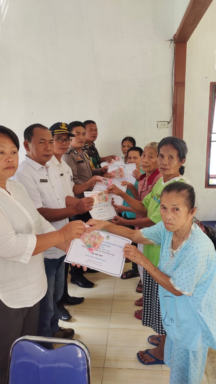 "Selain fisik untuk pembangunan jalan rabat beton sepanjang 326,20 meter di dua dusun yang dananya berasal dari dana desa Simaninggir Tahun anggaran 2024, juga diserahkan Bantuan Langsung Tunai (BLT) dana Desa 2024 yang diserahkan pertriwulan untuk 36 KPM untuk triwulan kedua diserahkan pada 19 juni 2024 lalu yang dihadiri camat, babinkamtibmas, Babinsa, BPD dan aparatur desa" kata parasian.